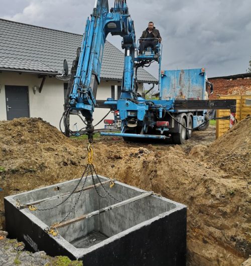 Nasze produkty wyróżnia wysoka jakość betonu klasy B25–B30 oraz atestowane pręty żebrowane (fi 8–fi 10). Każdą zewnętrzną ścianę pokrywamy masą asfaltowo–kauczukową, co dodatkowo zabezpiecza zbiornik przed niekorzystnymi warunkami. Dysponujemy własnym transportem z żurawiem, dzięki czemu możemy sprawnie dostarczyć i zamontować zbiornik bezpośrednio w przygotowanym wykopie.