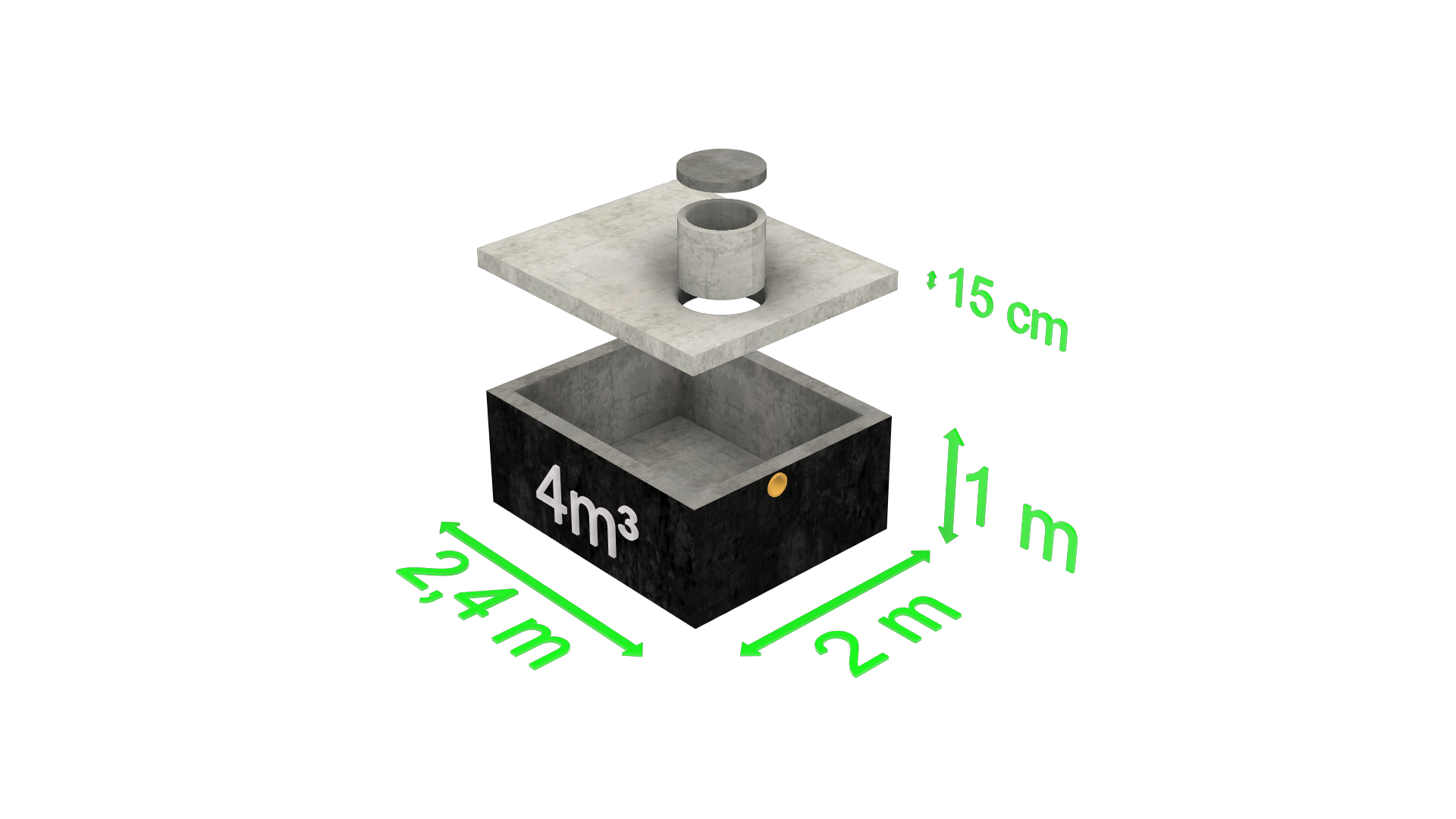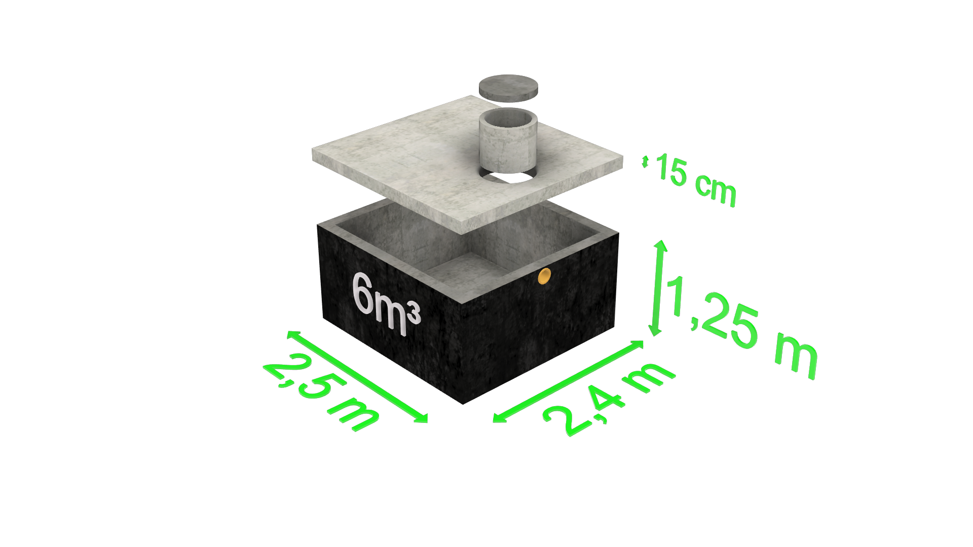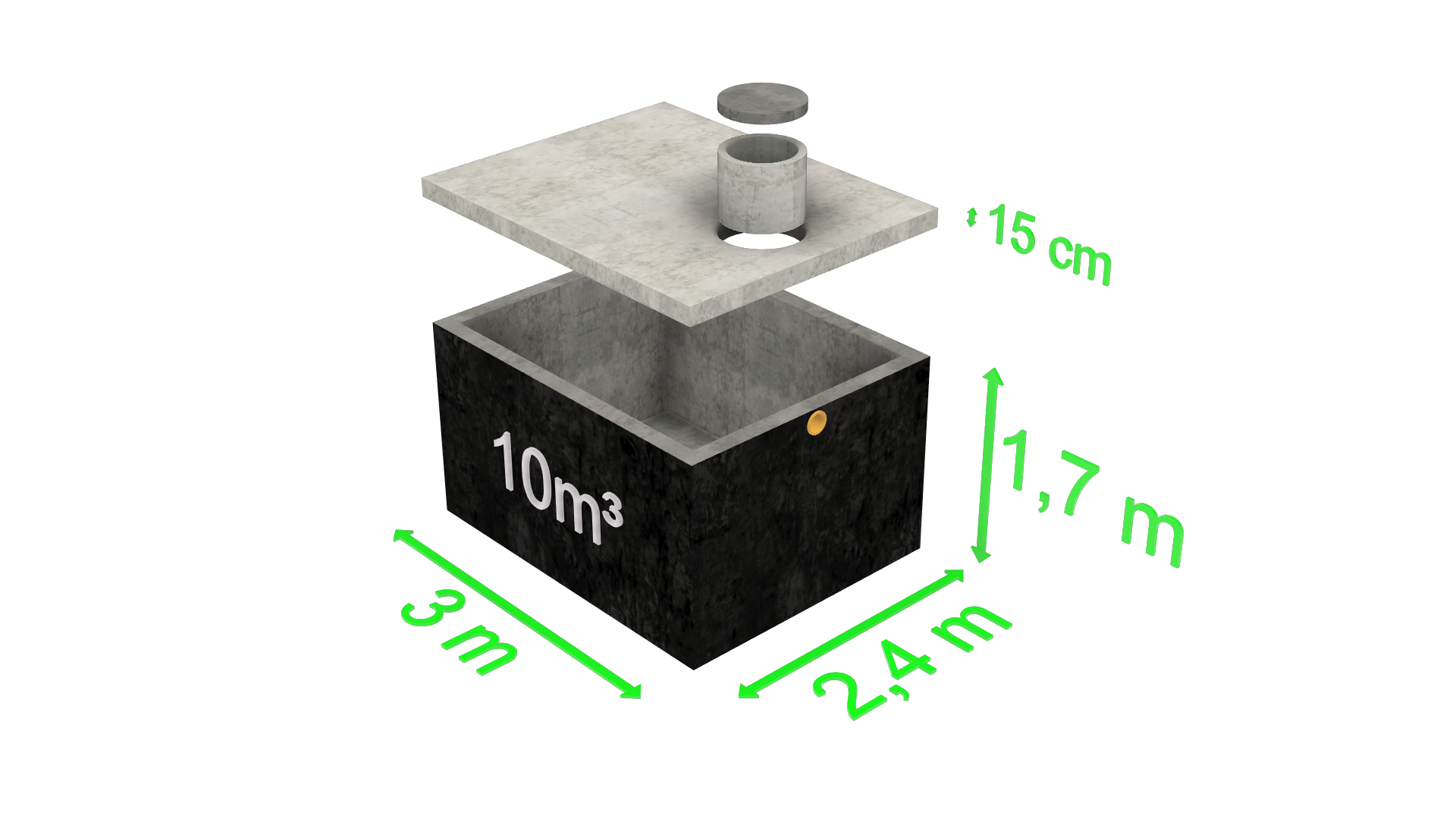 długość 2,50m, szerokość 2,40m, wysokość zbiornika z płytą 1,40m